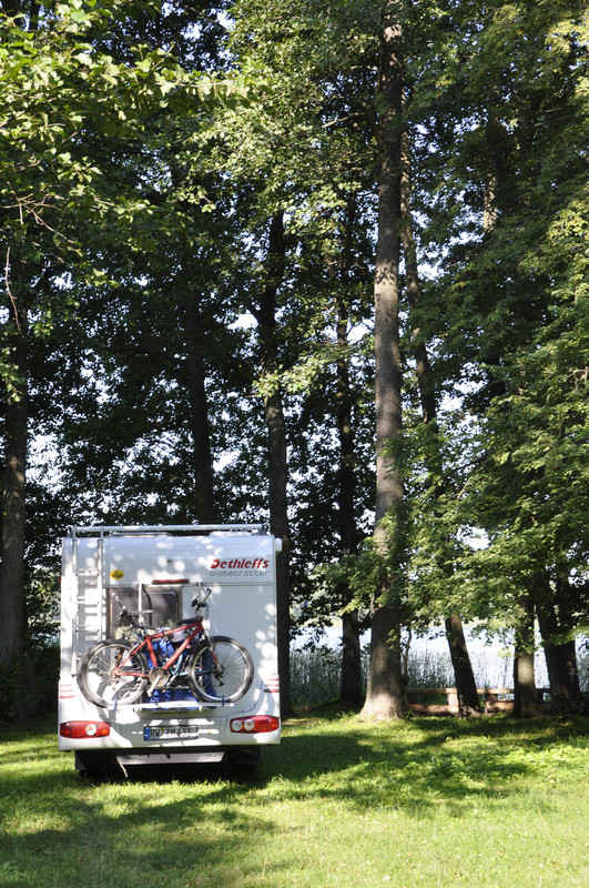 Dieser CP ist dermaßen speziell, dass er sogar Eingang in diverse Reiseführer gefunden hat. Die Anlage, Hotel und CP, ist sehr gepflegt. Das Angebot an Aktivitäten groß (Kanuverleih, Bogenschießen usw.). Das Besondere ist aber der Besitzer, er versteht sich als König des Volksstammes der Skansen, und die von ihm geschaffene "historische" Umgebung. Hier ein paar Bilder der wilden Horde: --> Link Überall auf dem Gelände finden sich Arbeiten von Holzbildhauern - Dämonen, Naturgottheiten und anderes mehr. Am Abend gibt es Lagerfeuer, Speisen und Getränke aus Blockhütten am Seeufer. --> Link Man kann sich auf dem sehr weitläufigen Gelände selbst einen Platz suchen. Wir haben uns für das Seeufer unter Bäumen entschieden. ![]() |