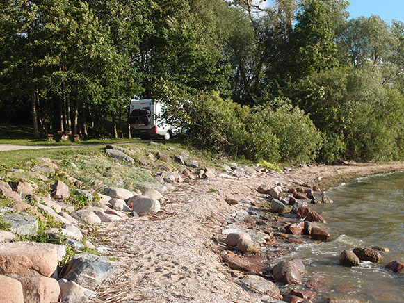 Stattdessen stehen wir nun aber fantastisch auf einem Picknickplatz direkt am Kurischen Haff, keine drei Meter vom Wasser entfernt. Wir können aus dem Küchen- und vom Alkovenfenster aus aufs Haff und den Sonnenuntergang sehen - wunderschön!!! Dazu hören wir das Meer rauschen und die Möwen kreischen... hier werden wir sicher fantastisch schlafen!!!