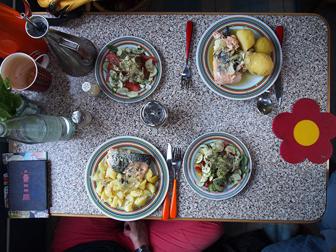 Ansonsten erkunden wir noch ein wenig weiter den Ort und kaufen schliesslich bei einem jungen, sehr netten Fischer etwas abseits der Touristenpfade geräucherten Heilbutt, den wir abends gleich mit Tomatensalat verspeisen. Er schmeckt köstlich!!!