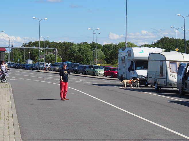 Danach fuhren wir der Grenze zu Lettland entgegen - auf einer litauischen und später dann weiter auf einer lettischen 'Autobahn'. Unter Autobahn versteht man hier etwas ganz anderes als bei uns... da fahren Fahrradfahrer auf der Straße, Menschen parken einfach am Rand, weil sie zu einem nahegelegenen Badesee wollen und das Witzigste war, dass ein Autofahrer mal eben auf der Ausfahrtspur anhielt, um sich mit einem vorbeikommenden Radfahrer in aller Ruhe zu unterhalten. Achja, nicht zu vergessen, man kann auf den meisten 'Autobahnen' an vielen Stellen umdrehen, es gibt viele einspurige Autobahnen und oft auch mit Ampeln. Im Grunde eher so etwas wie bei uns eine Bundesstraße. Einige wenige 'echte' Autobahnkilometer gibt es auch mal zwischendrin, die sind aber dafür mitunter dann mit Maut, weswegen wir sie nicht benutzen...