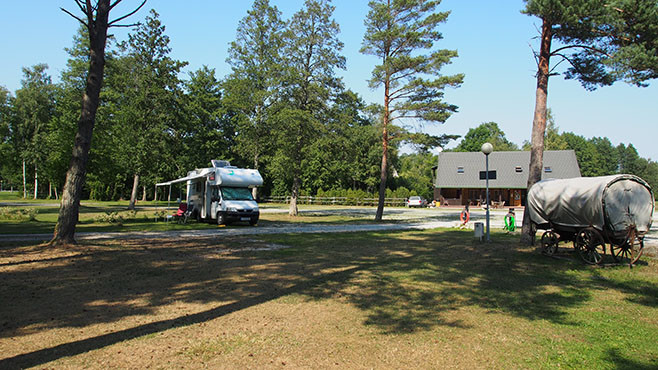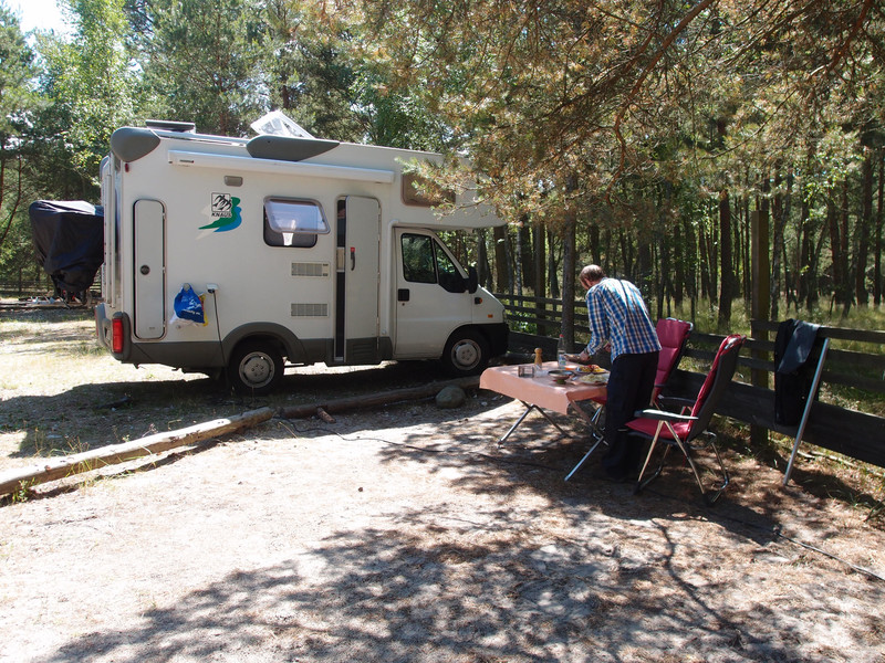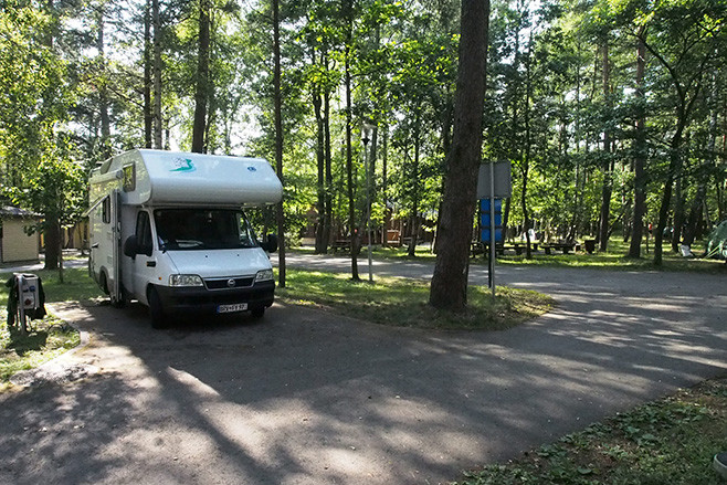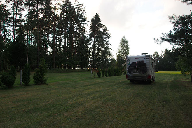 Danach waren wir beide so abgefüllt mit Kultur und haben deshalb Klaipeda auf morgen verschoben. Stattdessen sind wir jetzt auf einem Stellplatz kurz vor Klaipeda in Giroliai gelandet, den wir von einigen aus dem Womoforum kannten und den uns ein deutsches Ehepaar in Nida auch noch empfohlen hatte. Ein netter, ganz kleiner Platz unter hohen Kiefern, aber direkt an einer Bahnstrecke.