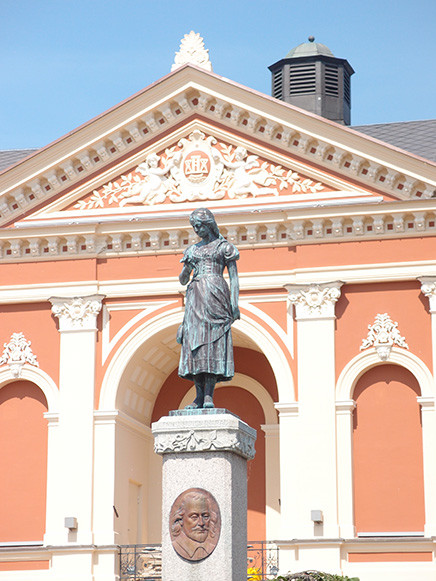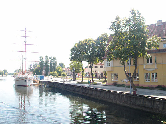 Eine Viertelstunde später schon beim Ännchen-von-Tharau-Brunnen, den ich unbedingt sehen wollte, weil ich in meiner Kindheit und Jugend immer wieder von vielen aus der Eltern- und Großeltern-Generation mit diesem Lied aufgrund meines Namens in Verbindung gebracht wurde... Jetzt weiss ich, dass der Dichter Simon Dach das Gedicht/Lied (vertont wurde es von jemand anderem) als Auftragsarbeit für eine zukünftige Fürstengattin zur Hochzeit schrieb, sich jedoch beim ersten Kontakt mit der Frau unsterblich in sie verliebte. Das Gedicht ist also auch ein 'Anschmachten', weil seine Liebe aussichtslos war. Das ist eine traurig-schöne Geschichte und das 'Ännchen' auf dem Brunnen sieht melancholisch aus. Diese Geschichte passt in diese Gegend!