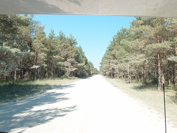 Um 13.50 Uhr MEZ erreichten wir die litauische Grenze, wo ein einsames Streifenfahrzeug der Polizei den GrenzfahrerInnen zuschaute. Und schon waren wir in Litauen. Ab jetzt wird die Uhr eine Stunde vorgestellt auf OEZ. Schnell entschieden wir uns, noch ein ordentliches Stück weiter zu fahren Richtung Klaipeda - und zwar auf kleineren und mittleren Landstraßen immer in der Nähe des Nemunas (dtsch. 'Memel', Grenzfluß zur russischen Enklave 'Kaliningrad') immer gen Nordosten.