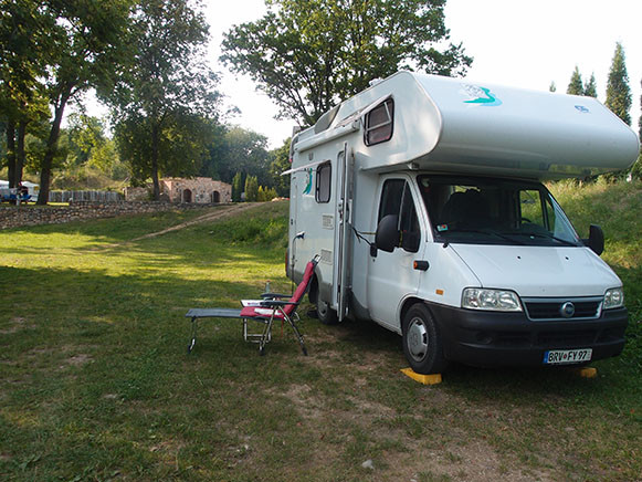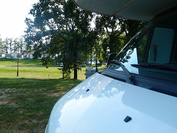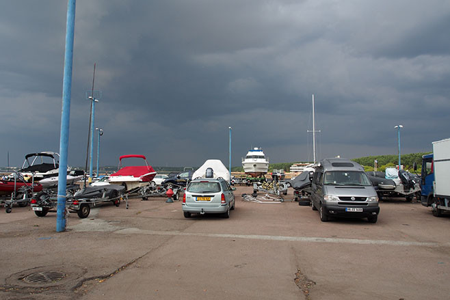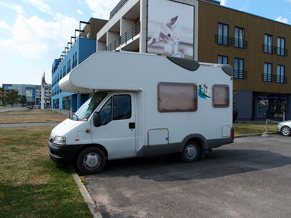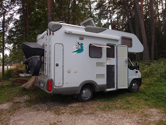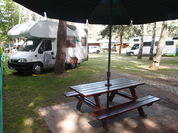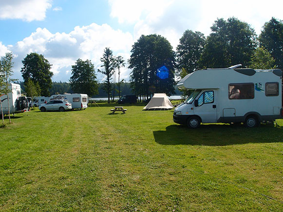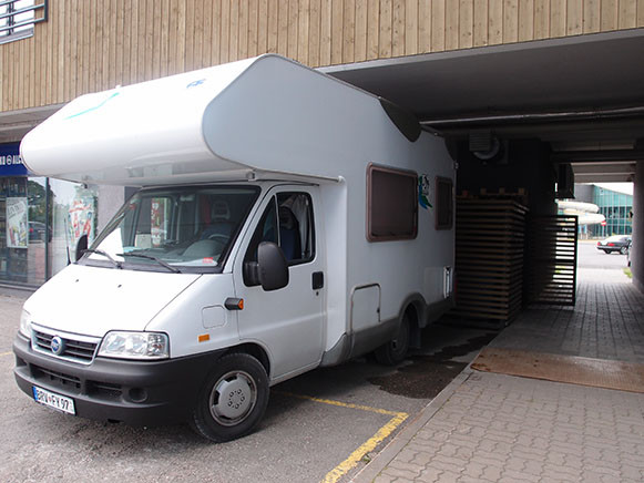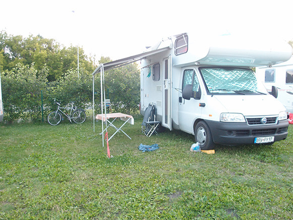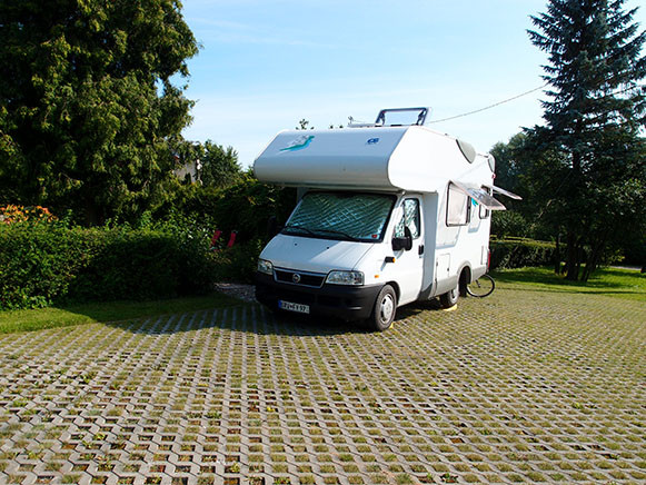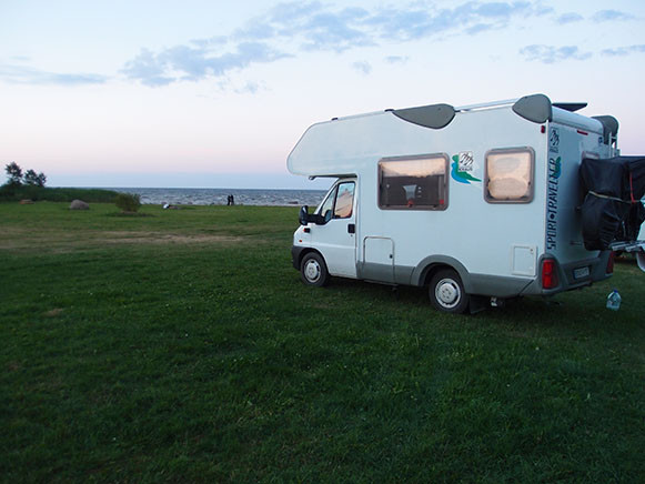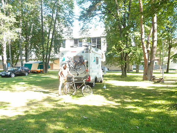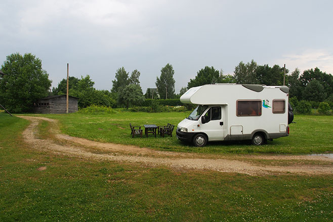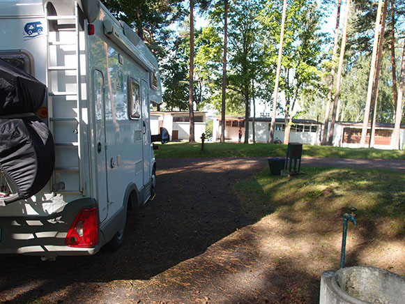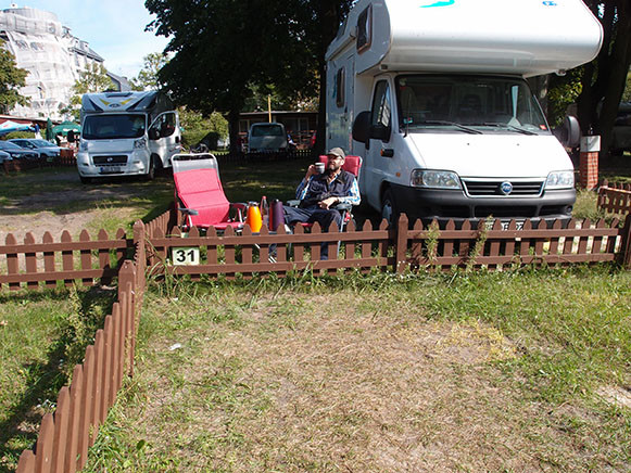 Da wir von allen gehört hatten, dass es in Riga eng und voll sein würde, wollten wir früh da sein, um uns einen schönen Platz für ja immerhin sieben Übernachtungen auszusuchen. Und tatsächlich, als wir um kurz nach 11.00 Uhr hier eintrafen, waren noch einige Plätze frei und wir stellten uns auf Rat des sehr netten Mannes an der Rezeption in die letzte Reihe, weil es hier am ruhigsten ist.