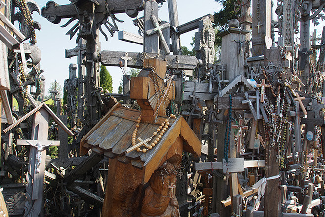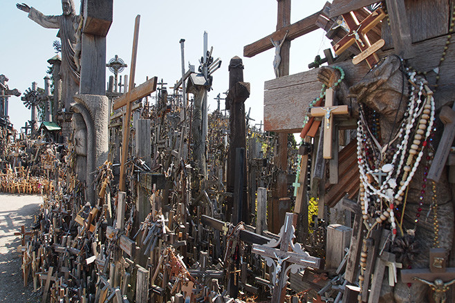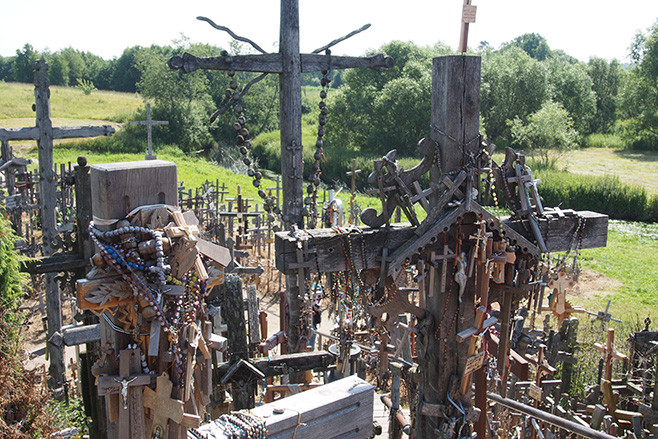 Heute morgen gegen 10.30 Uhr in Kurtuvenai gestartet gen Siauliai zum 'Berg der Kreuze', einem weiteren Highlight unserer Reise. Die Geschichte dieses Kreuzhügels ist schon recht alt. Vor allem aber in der Okkupationszeit, als Litauen ein Teil der UdSSR war, spielte der 'Berg der Kreuze' eine große Rolle für die LitauerInnen. Er half ihnen ihre eigene Identität zu behalten. Deshalb war der Hügel den Russen auch ein 'Dorn im Auge' und sie haben dreimal versucht, ihn plattzumachen. Doch jedes Mal, wenn sie das taten mit ihren Bulldozern, kamen schon in der folgenden Nacht tausende LitauerInnen, um die Kreuze genau an derselben Stelle wieder zu errichten - so ist er geblieben und seit den 1990-er Jahren zu einem Symbol für Frieden und Freiheit in aller Welt geworden! Wir trafen dort auch wirklich Menschen verschiedenster Nationen - Amerikaner, Japaner od. Koreaner, Holländer, Litauer, Letten und Deutsche. Kreuze stehen dort von Menschen aller Kontinente, Mönchen und Nonnen, sogar Soldaten verschiedener Länder (Frankreich, Polen, u.a.) - absolut beeindruckend! Und da wir recht früh und noch dazu an einem Montag dort waren, konnten wir tatsächlich dort die Stille erleben und das leise Klimpern der Rosenkränze und kleinen Kreuze an den großen hören... Es war bewegend, dort zu sein!