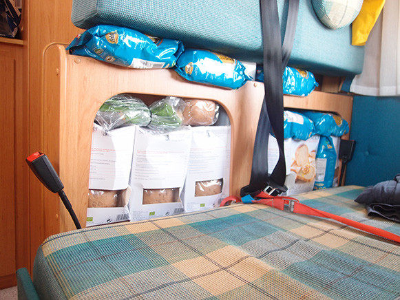 Heute haben wir uns vor allem hier erstmal eingerichtet, schön geduscht, herrlich gespiesen und anschliessend gefaulenzt... achja, und drei Expeditionsmobile aus Australien bewundert, die vorhin ankamen! Apropos be-wundern... ich habe mich zuhause schon ge-wundert, wo Felix die ganzen Massen an Kisten mit Essen und Material in Trevor verstaut hat... jetzt habe ich ein 'Lager' entdeckt - die Rückseite der einen Sitzbank! Und er hat mir die anderen gezeigt... echt toll, auf welche Ideen er beim Bepacken gekommen ist und wieviel in unser kleines Mobil passt!!! :ja: Da ich mich glutenfrei ernähren muss, mussten wir nämlich einiges an Vorräten mitnehmen...