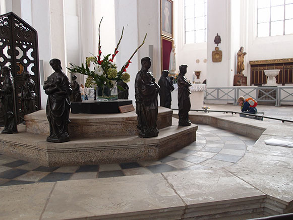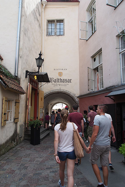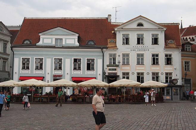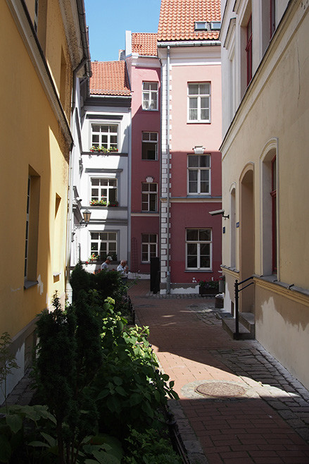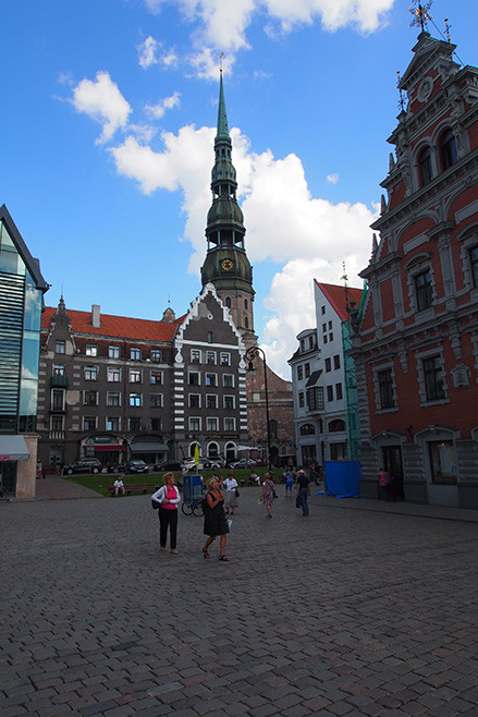 Als wir nach dem Konzert uns noch ein wenig im Innenhof und in der Kirche umsahen, sprach uns ein älterer Mann auf Deutsch an. Er erklärte uns ein paar lettische Worte auf einem Plakat, über die wir uns gerade unterhalten hatten und wir kamen ins Gespräch. Er fragte uns, was wir vorhätten und lud uns zu einer kostenlosen Altstadtführung ein, was wir natürlich gerne annahmen. So streiften wir ca. anderthalb Stunden durch die Altstadt immer begleitet von seinen spannenden Erklärungen. Er ist in Göttingen geboren, seine Eltern waren Deutsche, die aber in Lettland gelebt haben und dann wegen Krieg und Okkupation nach Westen flohen. Er fährt seit 1972 jedes Jahr nach Riga, hatte dort auch noch einen Onkel. Jetzt lebt er immer ein halbes Jahr in Riga im Hostel bei einer sehr netten Lettin und ein halbes Jahr in Deutschland.
