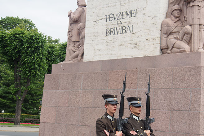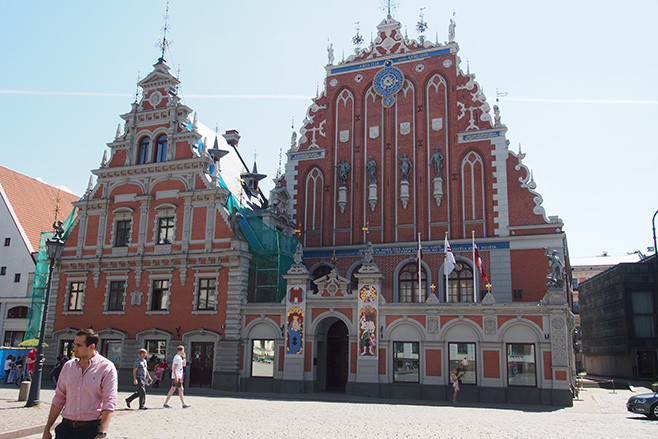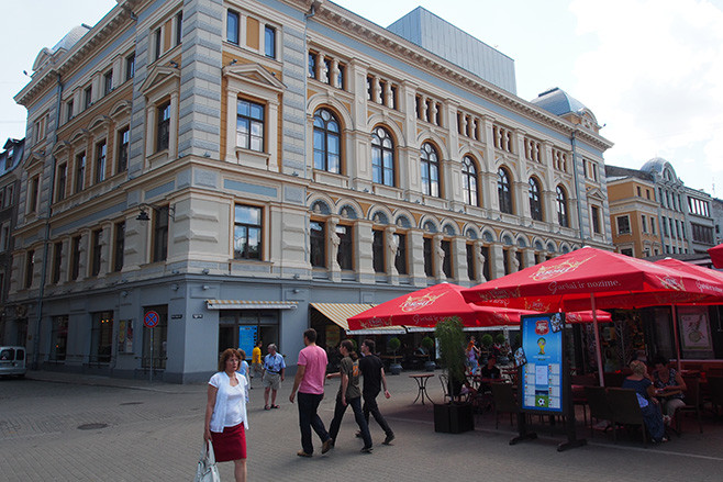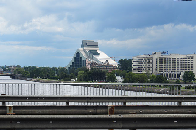 Heute morgen erstmal gemütlich gefrühstückt und unsere netten Nachbarn verabschiedet und dann haben wir uns gegen 11.00 Uhr aufgemacht mit den Fahrrädern in die Stadt. Es ist für uns nicht weit (2,5km) nach Riga rein, einfach mit den Fahrrädern zu erreichen! In der Stadt ist es dann allerdings eher stressig zu fahren, sodass wir heute erstmal die Räder vor der Saeima, dem lettischen Parlament am Anfang der Altstadt vor den wachsamen Augen der Polizei abgestellt haben und dann zufuß weiter sind.