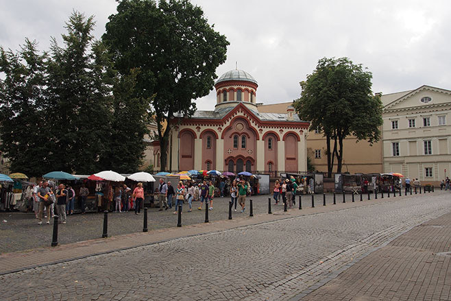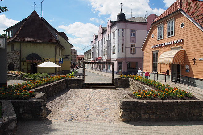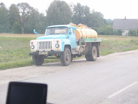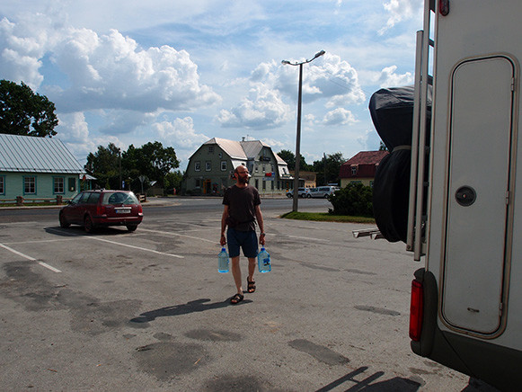 In Jurbarkas tauschten wir erstmal Euros gegen Litas und versuchten an einer Tankstelle Wasser für unseren Kanister zu bekommen, leider vergeblich. Die Bedienung war etwas unfreundlich und wir mussten dann stattdessen eine 5l-Flasche Trinkwasser dort kaufen. Als wir noch vor der Tankstelle standen kam ein Pössl-Kastenwagen mit einem älteren deutschen Ehepaar auf die Tankstelle gefahren und der Mann kam direkt zu uns. Er meinte, endlich mal wieder Menschen, mit denen er sich verständigen könne!? Er fragte, ob wir wüssten wie das mit den Gasflaschen funktioniere und wie das Wetter werde - wir wussten ja leider beides nicht.