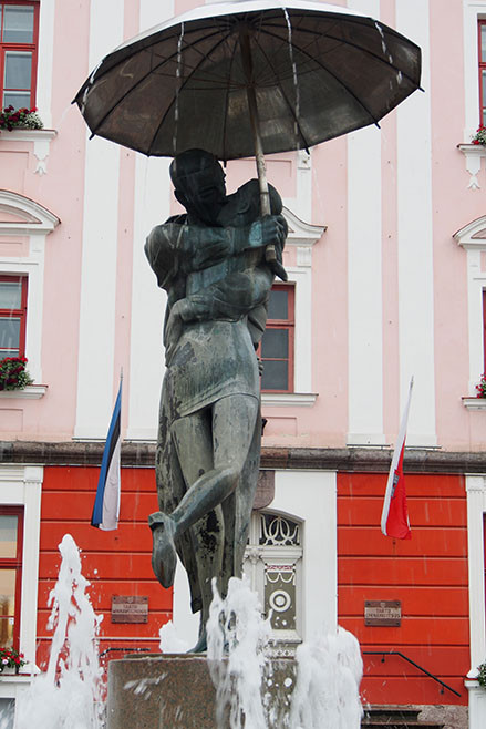 Bevor wir uns den Brunnen anschauen wollten, schlenderte ich allein die ganzen Souvenirstände um den Theaterplatz mit dem Brunnen entlang auf der Suche nach einer schönen Postkarte. An einem blieb ich stehen, denn dort verkaufte eine ältere Frau Bernstein und Postkarten wie die anderen auch, aber neben ihr stand ein Schild, darauf stand 'Ich spreche Deutsch'. Ich blieb stehen, sie sprach mich sofort an, ob ich Bernstein kaufen wolle. Ich verneinte. Aber wir kamen ins Gespräch. Ich fragte sie, ob sie Deutsche sei (sie sprach diesen herrlichen ostpreussischen Akzent) - sie bejahte. Sie lebt seit ihrer Geburt in Klaipeda (früher 'Memel') und Umzu. 1942 wurde sie geboren, 1944 floh ihre Mutter mit ihrer Schwester gen Westen. Sie leben heute in Deutschland im Rheinland. Sie hat sie mal besucht, es hat ihr aber nicht gefallen. Sie wunderte sich, dass sie dort nicht ihre Nahrungsmittel im Garten selbst anbauen, sondern kaufen im Supermarkt. Das ist hier in Litauen in der Tat völlig anders - hier haben die meisten einen Garten mit allem, was das Herz begehrt hinterm Haus oder sie haben eine Datschia vor der Stadt - so wie diese Frau und ihre Familie auch. Dort bauen sie alles, was sie zum Leben brauchen an Obst, Gemüse, Kartoffeln, Zwiebeln, an... den Rest verkaufen viele am Strassenrand. Auf der Weiterfahrt haben wir auch viele Bauern gesehen, die ihre ein, zwei, sechs Kühe von Hand gemolken haben - so etwas würde in Deutschland niemand mehr tun. Die Milch ist hier auch entsprechend teurer, aber dafür geht es den Kühen hier vielleicht auch besser. Wobei man viele auch einzeln angepflockt in einer Wiese stehen sieht - ob das soo schön für Kühe ist, weiß ich nicht??? Aber sie werden umhegt und gepflegt, sind hier viel wertvoller für die Bauern als bei uns, wo überwiegend nur noch die Anzahl zählt nicht mehr das einzelne Tier! Also ein völlig anderes Lebenskonzept! Wie sagte die Frau mir noch zum Abschied: Ob Gott da nicht einen Fehler gemacht habe, dass die Menschen immer mehr wollten? Sie werde morgen nicht arbeiten, weil Sonntag ist - obgleich morgen ein Kreuzfahrtschiff einlaufen wird, was sehr gute Geschäfte verspricht... tolle Haltung!