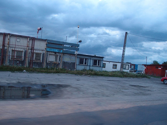 Kaum hatten wir sie überquert, begann eine riesige 'Shoppingmeile auf polnisch' (Zelte und Baracken mit Gardinen, Baustoffen, Blumen, Angelbedarf), die allerdings nicht wirklich zum Shoppen einlud. Zwischen Zigaretten, Angelbedarf und Baustoffen aller Art konnte man in einer Baracke auch sein Augenlicht überprüfen lassen und sich eine neue Brille anfertigen lassen. Und dazwischen eine Tankstelle nach der anderen... es war bizarr!