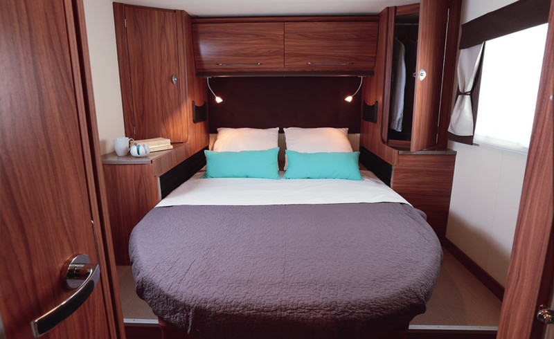 Er hatte ein Auto mit dem von uns favorisierten Grundriss mit höhenverstellbarem Queensbett und großer Garage stehen. Wichtig, da so auch Fahrräder in der Garage transportiert werden können.