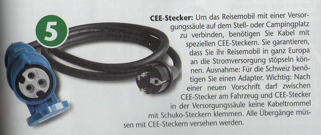 Hallo. Habe im Netz nichts dazu gefunden, nur den Artikel in einer Reisemobilzeitschrift.Hoffe Scan ist lesbar. Manchmal sind die verlegten Leitungen echt abenteuerlich . ![]() Was ist jetzt die Frage? Die Verbindungen müssen CE sein. Also darfst du keine normale Kabeltrommel nehmen, sondern nur CE. Hi Keine Frage, nur ein Hinweiß auf neue Vorschrift, hatte schon mal auf einem Campingplatz den Platzwart am Mobil, der hat die verlegten Kabel kontrolliert hat. Und was mache ich, wenn am Stellplatz nur Stromsäulen mit Schukodosen stehen (z. B. Minheim/Mosel)? MfG Bernd Der Artikel stammt aus der Zeitschrift "Reisemobil" 08/2014 Seite 91. Das wurden Praxistipp's für WOMO-Neulinge publiziert . Habe auch schon gerätselt was der Beitrag sollte. Friedhelm Wo ist der Älläkkktro-Ulli??