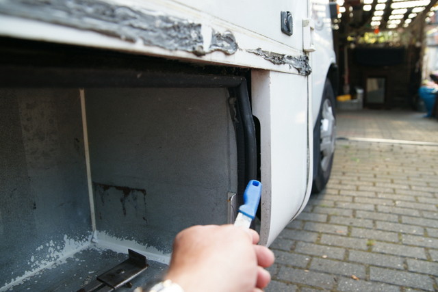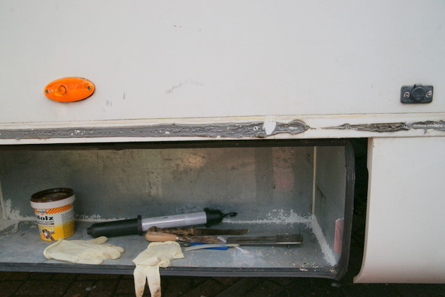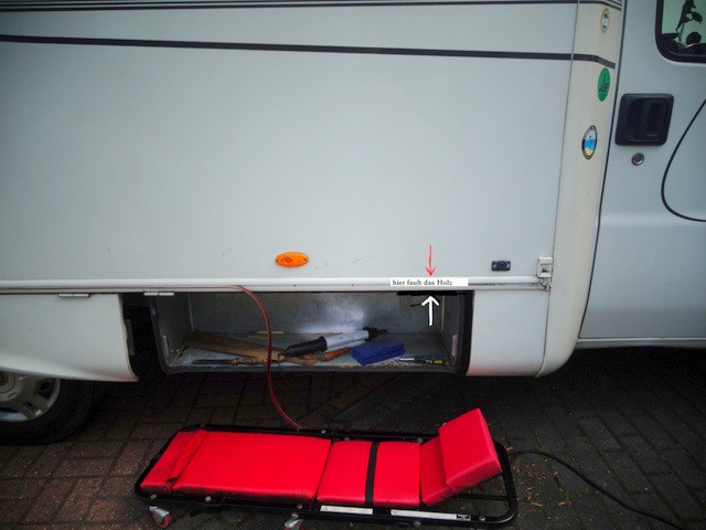 Danke für die jetzigen Antworten. Ich glaube nicht das das Wasser von oben kommt, wie hier schon erwähnt wird es Spritzwasser vom vorderen Reifen sein. Wenn ich weiter nach oben steche komme ich in gesundes Holz, und auch nur die eine Stelle ist vermodert. Soweit man es sehen kann ist das faule Holz bis auf Kleinigkeiten entfernt Die Schrauben vom Schrank sind nicht eingerostet oder oxidiert auch ist der Schrank im hinteren Bereich,an einer Ganz anderen Stelle & die Klappe ist im vorderen Bereich.