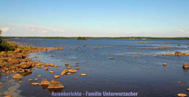 Heute ist Sonntag und es herrscht schönes Wetter. Gestern am Abend bei der Fahrt hat es sogar geregnet – mit dem idealen Nebeneffekt, dass die insektenverklebte Windschutzscheibe wieder halbwegs sauber geworden ist. Bevor wir wieder losdüsen, "probieren" wir den netten Strand und das Wasser aus ...