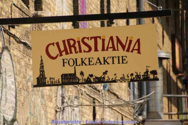 Nach dem herrlichen Frühstück mit nettem Ausblick auf Kopenhagen und Umgebung starten wir zur Besichtigungstour. Zu Fuß machen wir uns auf den Weg – zuerst nach Christiania – die ehemalige „Hibbiestadt“, die in der Zwischenzeit eher eine Tourismusattraktion darstellt. Wir haben den Eindruck, dass neben den Busladungen von Touristen viele Menschen nur hier her kommen, um in der Öffentlichkeit ihren Joint zu rauchen. Da wir zu beiden Gruppen nicht gehören, suchen wir den Weg zu den anderen Sehenswürdigkeiten. Entgegen meinem sonst sprichwörtlichen Orientierungssinns verlaufen wir uns – man kann fast sagen – wie Hänsel und Gretel. Sonja ist mir jetzt auch keine große Hilfe. Ansonsten – wenn ich mich gar nicht mehr auskenne, frage ich ansonsten immer Sonja, welchen Weg wir einschlagen sollen und dann gehen wir genau in die entgegengesetzte Richtung. Das klappt meistens, aber selbst hier funktioniert diese Methode in Kopenhagen nicht und so bringen wir doch einige Kilometer Fußweg an diesem Tag zusammen.