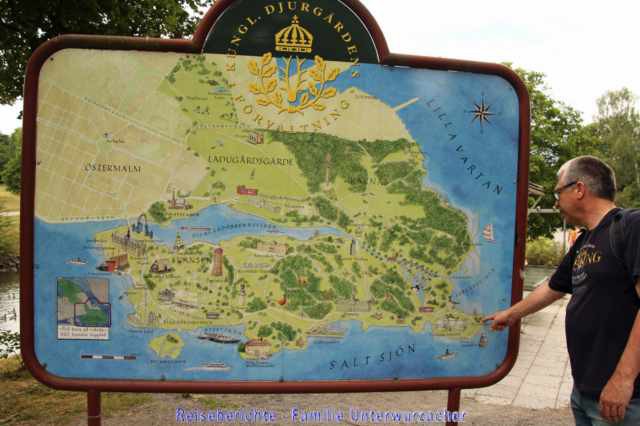 Die ca. 180 Kilometer nach Stockholm vergingen bei ebensolch guter Musik wie gestern, wie im Flug und wir erreichen Stockholm ohne Schwierigkeiten. Zum ersten Mal auf dieser Reise nehmen wir, den für uns bewährten, Schulz-Reiseführer zu Hilfe, der uns in das Erholungsgebiet Djurgard (ein paar Kilometer außerhalb der von Stockhalm) bringt.