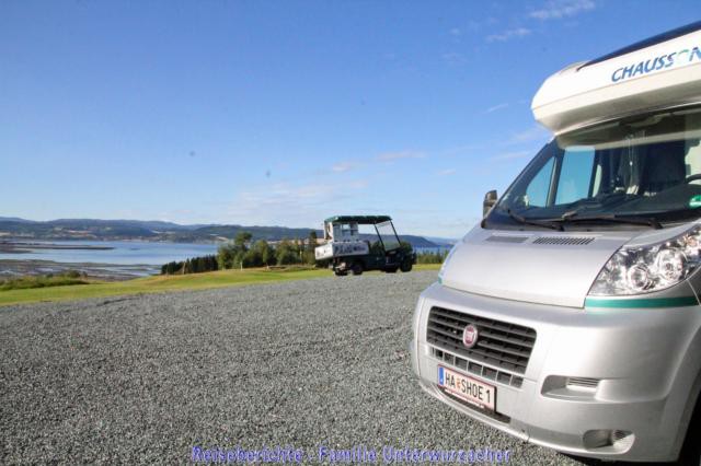 Es geht noch ein bisschen weiter, bevor wir uns bei einem Golfplatz neben dem Fjord ein schönes Übernachtungsplatzerl suchen.