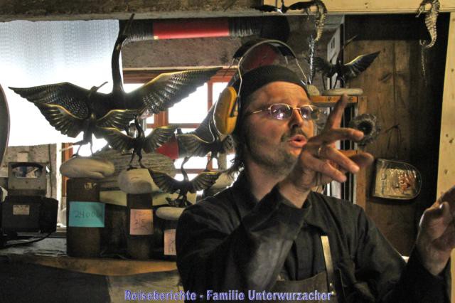 Den Schmid von Sund – neben dem Fischereimuseum – besuchen im Jahr laut Aussage der Reiseführer so ca. 30 – 400000 Menschen. Auch ihm kann man bei der Arbeit zusehen und auch viel mit ihm quasseln. Er fabriziert alles mögliche Getier und Gestalten kunstvoll aus Metall.