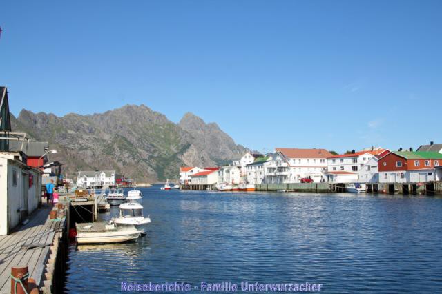Nach dem Mittagessen geht es weiter nach Henningsvaer. Viele Touristen, wie wir, haben den Weg über die schmale mit Ausweichen versehene Küstenstraße hier gefunden.