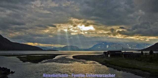Nun stand die Frage im Raum, wo es denn nun hingeht. Die Fakten: Es ist 18:00 Uhr. Zum Nordkap noch ca. 680 km. Wetterbericht sagt heute noch schönes Wetter am Nordkap an - ab morgen soll es schlechter werden ...Wer mich nun kennt, weiß, dass ich zum Nordkap möchte: wenn möglich gleich und noch heute. Ich denke mir oft, dass Gott sei Dank Sonja an meiner Seite st, die mich ab und zu einbremst und auf den Boden der Realität zurück holt. Wir einigen uns darauf, dass wir so lange weiter fahren, wie es uns behagt ...