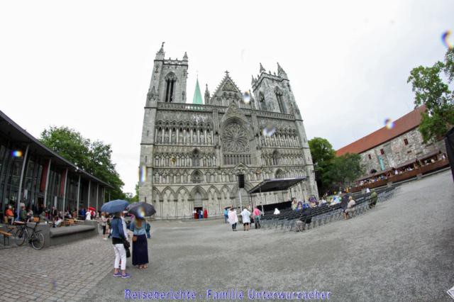 Macht aber nichts, denn wir wollen eh weiter nach Trondheim. Die Stadt in der die norwegischen Könige gekrönt werden. Zu Fuß erkunden wir die Sehenswürdigkeiten, wie Liebfrauenkirche, Dom, die alte Stadtbrücke, die Speicherhäuser, den Hafen, den Fischmarkt und zusätzlich kommen wir noch in den Genuss einer Handwerksausstellung heimischer Betriebe.