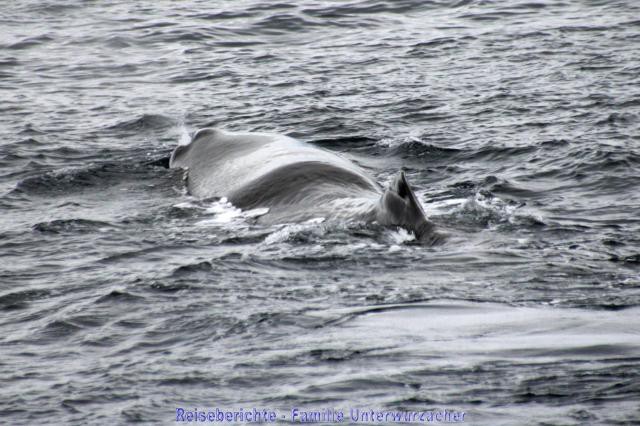 Es ist schon ein Erlebnis für uns, diesen großen Säugetieren so nahe zu sein. Die Wale strahlen mit ihren ca. 16 Meter Länge eine majestätische Ruhe aus. So gar der ca. 50 Jahre alte Wal "Glenn", der auf dem Rücken eine weiße Markierung hat, war mit dabei. Nach fast fünf Stunden Seefahrt kehren wir wohlbehalten und beeindruckt zu unserem Womo zurück. Der Abstecher auf die Versteralen hat sich absolut ausgezahlt und wir werden noch lange von unserer Walsafari erzählen können.