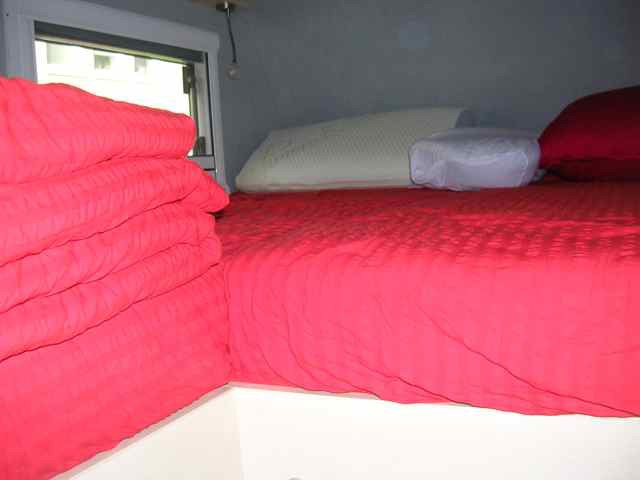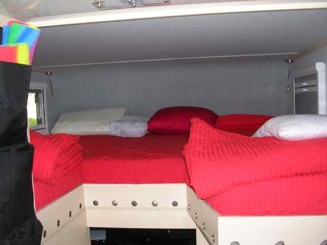 Ich habe hinten Stockbetten. Dort schlafe ich, wenn der Alkoven voll ist. Alternativ auch hinten vollgeräumt und vorne schlafen oder Alkoven zur Hälfte angeräumt und in der anderen Hälfte schlafen. Je nach Mitfahrern und benötigtem Stauraum. RK