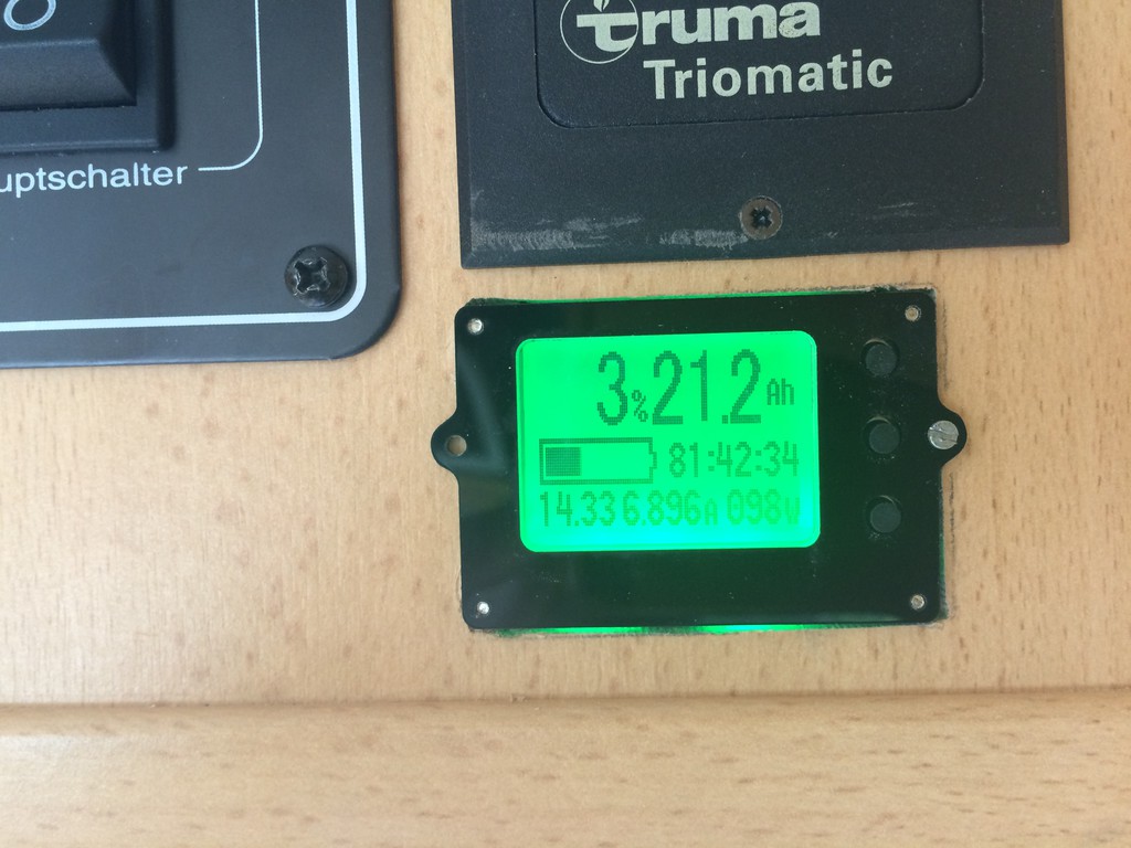 Hi, weiter vorn hatte ich schon mal beschrieben das es mit dem internen Shunt des EBL nicht geht. Der Shunt des EBL ist in der Plus-Leitung, der billig BC TF01N funktioniert aber nur mit einem Shunt in der Minus-Leitung. Ich habe das auch ausprobiert. Gruß Uwe Moin Uwe, na prima ..... :roll: Damit bereitest du mir aber gerade keine Freude. :? Kennst du eine alternative? Grüße Thorsten Nachdem ich Post aus China erhalten habe, habe ich gestern mal ein wenig gebastelt. Der da Link zum eBay Artikel kommt mit einem Shunt, der sich ideal und platzsparend an eine Standardpolklemme --> Link schrauben lässt. Misst recht genau, mit dem (günstigen) Multimeter habe ich bei Belastung mit einer 60W Halogenbirne -0,1V und -300mA Abweichung, was sicher auch an den Mess-Strippen liegt. Den Peukert-Faktor darf man sich zwar dazu denken, dennoch erlaubt das Teil eine ausreichende Einschätzung der entnommenen Ladung. Läd man mehrfach nur teilweise nach, ist das Teil unbrauchbar, da der Wirkungsgrad unberücksichtigt bleibt. Erreicht man jedoch regelmäßig die Vollladung kann man damit leben. Den perfekten Einbauort habe ich noch nicht gefunden, jetzt muß sich das Teil erst mal mit doppelseitigen Klebebaud auf der Abdeckung der Sitzkonsole befestigt beweisen.