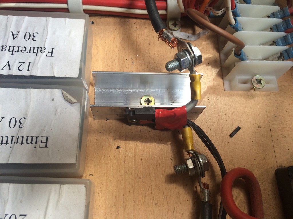 Habe ich noch einen 50A Shunt da. Weiss nur nicht ob dann die Anzeige stimmt. Ansonsten muss ich ihn Kalibrieren. Ich lasse es mal so und teste morgen ob er heiss wird bei 30A. kalibrieren geht nur +- 10% zum anpassen an einem 1,5mOhm Schunt habe ich einen Spannungsteiler genommen ... funktioniert siehe hier --> Link Ich habe es jetzt mal mit dem kleinen Shunt gelassen aund auf Volllast betrieben. Der Spannungsverlust ist sehr klein und es wird demzufolge auch nicht warm. Die Anzeige ist ziemlich genau. Also für meine Zwecke reicht es vollkommen. Nun sehe ich was die Solaranlage macht. Wovon ich sowieso nur die unteren Anzeigen brauche. Hier der Shunt mit den Anschlüssen. Quetschung wird noch besser gemacht. Hatte nicht die richtigen Kabelschuhe. Und hier die Anzeige ![]() Ach ja, abend ist er dunkel da kein Strom mehr fliesst und verbraucht demzufolge so gut wie nichts. Hallo Rene, 50 A x 60 mV = 3 Watt. Da wird nix heiss! Alf maximale Belastung ... 50 A * 0.001 Ohm = 0,05V 0,05V * 50A = 2,5 W ------------------------ angezeigte Belastung ... 6,9A * 0,001 Ohm = 0,0069 V 0,0069 V * 6,9A = 0,048 W da wird nichts warm !? Hier mal ein Beistiel wie man den Shunt vernünftig angeschlossen bekommt ![]() So sieht es bei mir aus: Kleine EPOXY-Platte, 2 mal M6-Schrauben, passende Ringösen an Shunt und Kabel, Scheiben dazwischen, kleine Aluplatte zur Kühlung, fertig. Abstand reicht, sieht durch die Perspektive etwas eng aus.... Das ist in etwa auch meine Konstruktion. Hast du die Ringösen geklemmt oder gelötet? Ich habe ein Kurzes 6mm2 Kabel dran gelötet und dann mit Ringösen. Aber warum braucht ein Shunt einen Kühlkörper wenn da nichts heiss wird? Denn wenn der heiss werden würde, währe er nichts Wert weil zu viel Spannung verbraten würde. Erst geklemmt und dann gelötet.