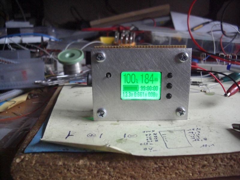 Bitte posten. Danke Danke. Wie sieht das denn aus? 21,99 plus 20 Tacken Versand! Dann kommt noch Zoll und Mwst. Wo landet man dann? Lohnt es sich dann noch? Garantie und so.... Meinen gibt es auch immer noch für ca. 30 $ incl. Versand.... "Capacity Tester Indicator coulometer" in ebay de. Dollarkurs ist halt nicht mehr so gut :roll: Lohnt sich sicher noch, Garantie in Hongkong kann klappen oder auch nicht. Hallo zusammen, habe am Sa. den Low-Cost Batterie-Computer eingebaut, um das zierliche Teil vernünftig Händeln zu können, habe ich eine Frontblende angefertigt, dafür musste ich aber die Tasten noch gegen längere tauschen. Ein EIN/AUS-Schalter ist oben links noch dazugekommen. Die Leiterplatte auf der Rückseite, beinhaltet den Spannungsteiler für meinen 1,5mOhm Shunt und Klemmen für die Anschlussleitungen. ![]() ![]() ![]() ![]() ![]() Der Low-Cost Batterie-Computer misst zu meinem erstaunen den Strom sehr genau Auflösung 1mA, konnte bereis dadurch schleichende Stromfresser ermitteln: - Solar-Regler (10mA) - Radio (55mA) Da man auf die Anzeigen-Beleuchtung kein Einfluss hat, habe ich den BC in meiner 12V-Verteilung, hinter einer Klappe untergebracht. Braucht das Teil eine externe unabhängige Spannungsversorgung? Wie schliesst in den Shunt an wenn da nur dünne Anschlüsse dran sind? Hallo, es braucht keine externe Versorgung, nimmt die paar mA aus dem zu messenden Akku. Ich habe an den Shunt 2 kräftige Ringösen gecrimpt und dann ging es auf die dicken Leitungen zur Batterie bzw. zur Masse.