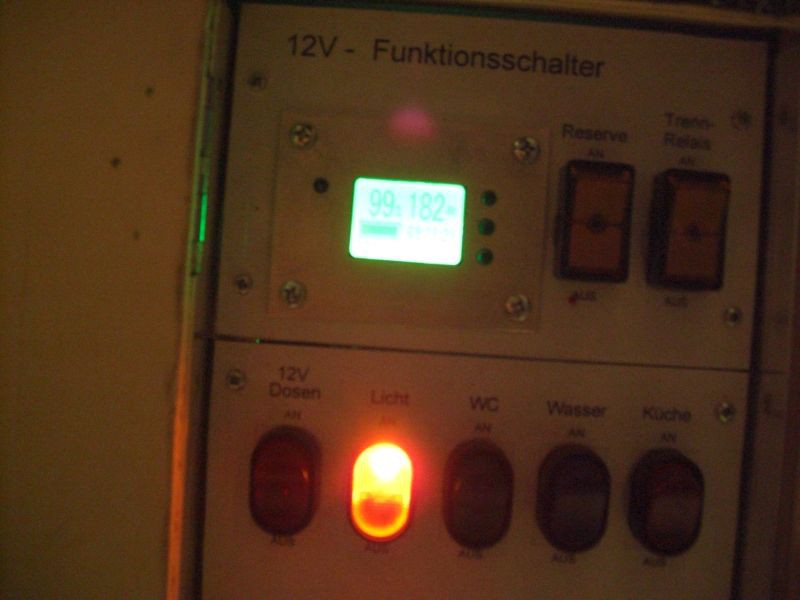 Deswegen ist mein Teil hinter der Klappe vom 12V-Verteiler verschwunden, man muss ja auch nicht stetig auf das Teil schauen ... Habe 185 Ah Akku und 160WP Solar, brauche das Teil nur um zu sehen ob die Energiebilanz für autarkes stehen an mehreren Tagen so passt oder ob man doch noch ein paar Solar-WP nachrüsten sollte. Hallo Ralf, wird bei mir wohl auch ein "Versteckter" Einbau werden. Ich dachte Du hättest eventuell eine möglichkeit gefunden die Beleuchtung zu ändern. Überlege gerade eine kleinens Schiebefensterchen in die Frontblende zu integrieren damit ich nicht jedesmal eine Klappe oder Tür öffnen muß. Dieter ät Dieter Kannst du mir sagen wo du in der Bucht den grossen Shunt gefunden hast? Danke und Alf Kommischerweise verlangt er für den 50A keine Versandkosten, Link zum eBay Artikel aber für den 100A schon. Link zum eBay Artikel Um so größer der Stunt, um so ungenauer wird er bei kleinen Strömen ! 50A = 600W ist schon eine Hausnummer ... wer natürlich ein großen WR > 600W verwendet, wird nicht um einen entsprechenden Shunt drumherum kommen. ... wichtig ist das der Ruhestrom über den Shunt bei abgeschaltetem WOMO unter 40mA kommt, sonst schaltet der BC nicht im Strom-Spar-Modus und die Display-Beleuchtung bleibt eingeschaltet. Auf die Display-Beleuchtung hat man ohne Eingriff in das Modul keinen manuellen Einfluss, Beleuchtung durchgängig = entladen Beleuchtung blinkend = laden Hallo Alf, such mal nach siegfried8507. Er bietet noch welche an. Ich habe für einen 2,50€ +2,50€ Versand bezahlt. Viel Spaß beim bauen. Dieter