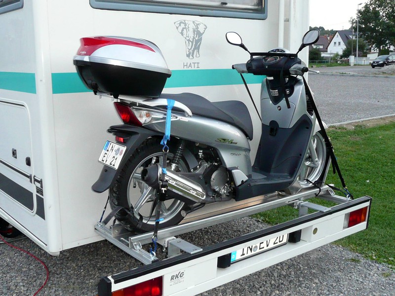 Und den Lackflächen der Verkleidung ganz sicher auch nicht :!: Wir verzurren so: ![]() Wir haben den da: ![]() von hier: --> Link Wenn man die Spiegel abbaut, passt er genau in die Heckgarage und wiegt nur 97kg, Preis unter 1k€ ist auch OK. Erst wollte ich mir einen gebrauchten 125er Markenroller kaufen, aber die waren teurer, schwerer und oft auch größer (passten nicht in die Heckgarage), so dass das ein guter Kompromiss war. Bei dem Gewicht und China darf man sich über Verarbeitung und Materialstärken / Robustheit keine Illusionen machen, aber da er eh nur im Urlaub gelegentlich bewegt wird, erfüllt er voll seinen Zweck, auf gerader Strecke kann man zu zweit 80-85kmh erreichen, die Scheibenbremsen sind gut. Im Stadtverkehr in den üblichen südlichen Urlaubsländern (Italien - Rom etc...) kann man mit den Rollerpulks an den Ampelkreuzungen locker mithalten und Parkplatz ist bei Stadtbesichtigungen kein Problem mehr :D . Verzurrt wird das Teil mit 2 Automatik - Zurrgurten hinten an den Haltegriffen und vorne mit 2 Automatik-Zurrgurten am Lenker über Kreuz, zusätzlich habe ich am Viorderrad un der Garage so eine Wippe/Schiene, die das Rad nach dem Reinschieben fixiert. Die Gurte werden mit Gefühl angezogen, dass der Roller so ca. 1/3 einfedert und nicht wackelt. Unter den Gurten vorne lege ich ein Stück Iso-Matte, damit sie nicht auf dem Lack scheuern. Servus Wolfgang :top: so muß des sei..... Wir haben übrigens einen GTS 300 dabei... sehr schön und top wertbeständig. Jako ![]()