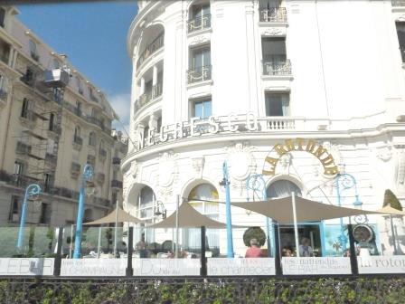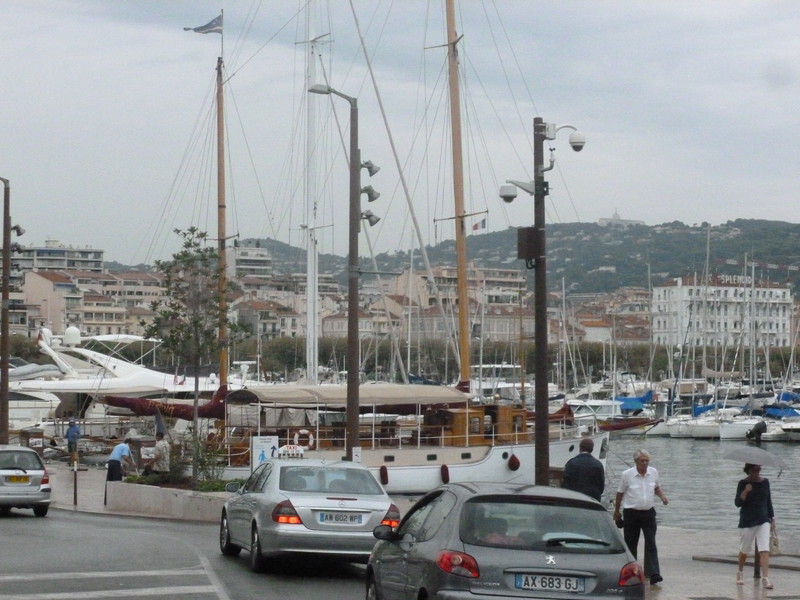 Zu Fuß ging es am Strand lang. Kilometerweit. Unser Hund hat tapfer durchgehalten. Aber zurück mussten wir den völlig überfüllten Bus nehmen. Es war nämlich mittlerweile richtig am Regnen. Wir haben uns in Cannes den Hafen, das Radison Blue Hotel von außen (DZ ab 415,- die Suite ab 1765,- € natürlich pro Nacht) und die Altstadt angeschaut.