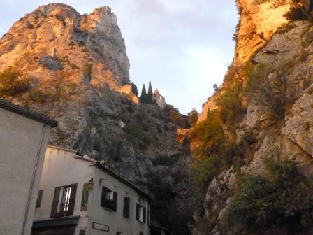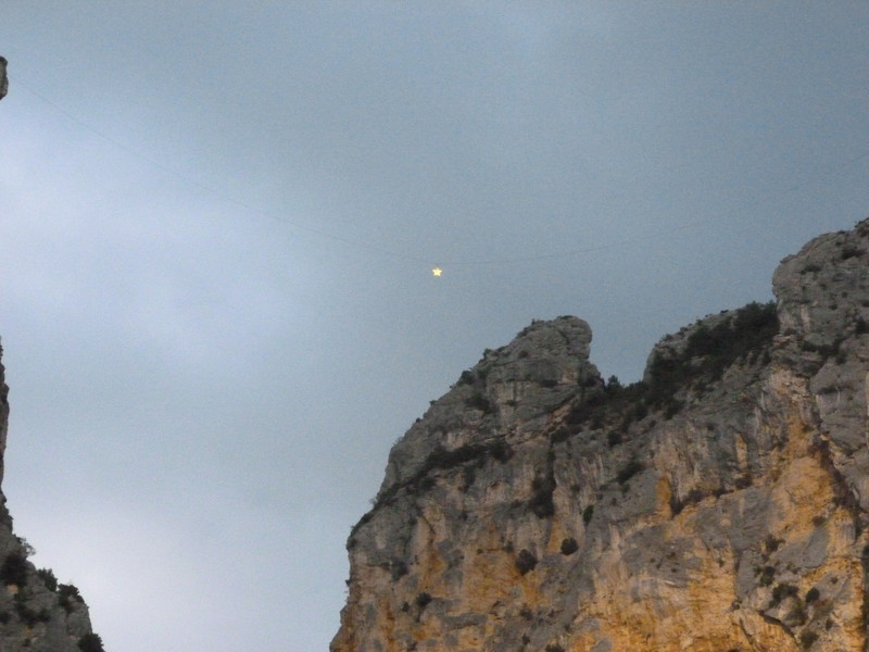 Am Donnerstag ging es jetzt Richtung Georges du Verdon. Das stand auf jeden Fall auf unserer Liste. Als Übernachtungsplatz hatten wir uns den SP in Moustiers de St. Marie ausgesucht. Dank Navi sind wir ohne Probleme dort am späten Nachmittag angekommen. Mein Mann stieg aus dem Pössi (Pössi ist übrigens unser Kastenwagen) schaute hoch und meinte: „Schau dort ist eine Seilbahn“! :klatschen: Ich musste schmunzeln und erklärte ihm, dass er den von mir gesuchten Stern gefunden hatte.