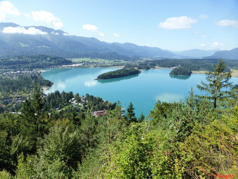 Wir haben Ungarn in Richtung Südwesten verlassen und sind über die Steiermark nach Kärnten zum Faaker See gefahren. Unmittelbar vorher war dort ein riesiges Biker-Treffen mit ca. 65.000 Teilnehmer, vorwiegend Harleys. Am Tag unserer Anreise war aber für die Teilnehmer schon wieder Abreise. Es waren ausgesprochen tolle und aufgemotzte Fahrzeuge dabei mit dicken, fetten Hinterreifen. Wir hingegen mit unserem kleinen Roller konnten da nicht mithalten. Aber schöne Ausflüge haben wir trotzdem gemacht, u.a. auf die Taborhöhe mit einem schönen Ausblick auf den türkisfarbenen Faaker See.