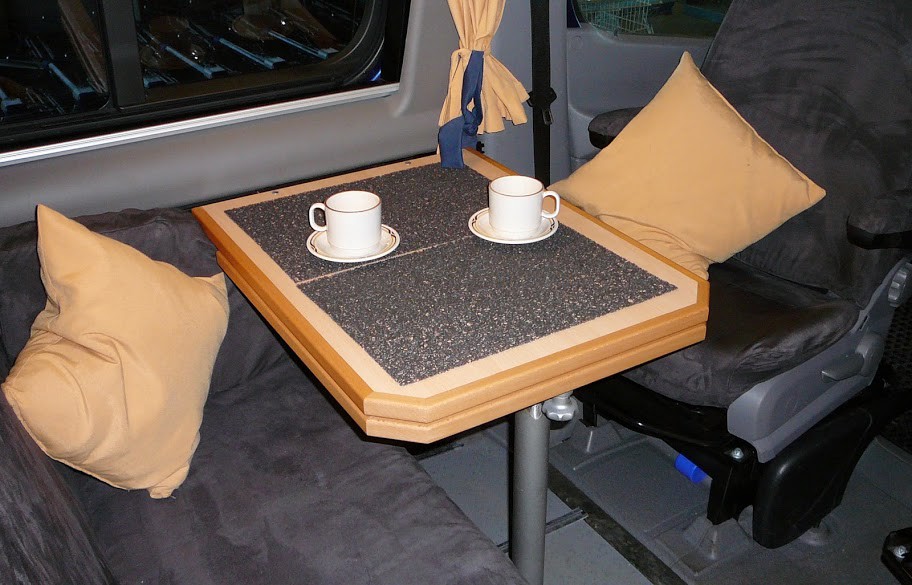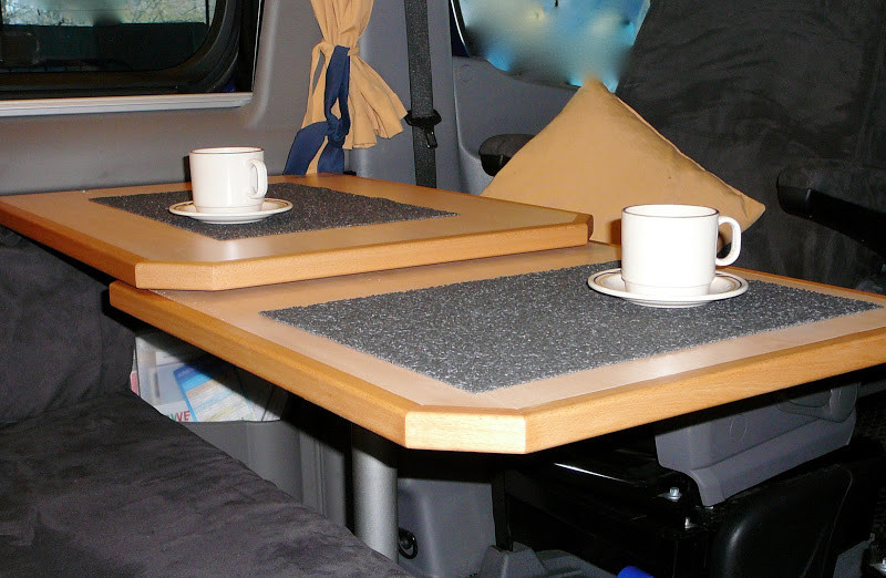 ich suche ein ausdrehbares Tischgestell, welches auch zum Bettenbau abgesenkt/abgeklappt werden kann. Ich meine damit, das eine kleine Tischplatte unter der großen Tischplatte liegt, Die dann bei Bedarf nach aussen geschwenkt wird. Bei den Teilintegrierten Fahrzeugen findet man diese Konstruktionen häufiger, aber ohne Abklapp- oder Absenktfunktion.