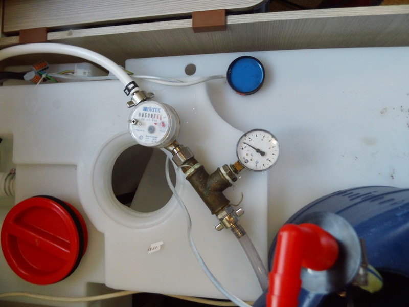 Nun wird die Toilette vernünftig gespült und der Druck an den Wasserhähnen ist ausreichend. Ein richtiger Fortschritt in der Dusche ist nicht festzustellen. Der Wechsel auf einen ca. doppelt so großen Duschkopf war schon ein guter Schritt - aber nicht so richtig befriedigend.