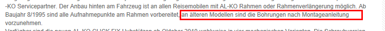 Ich habe mir diese gekauft, weil laut Alko an den Fahrzeugen nach Baujahr 1995 die entsprechenden Bohrungen schon von Werk aus vorhanden sind.