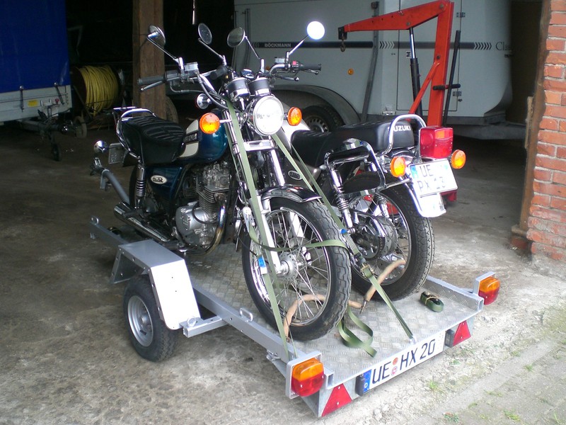 ... bau vorne wahlweise 1 - 2 "Serviceklappen" ein, entweder rechts + links oder vorne dann kommst Du halbwegs gut an die Gurte. Wir haben den gleichen Agados-Hänger wie "Hans S" zGG 1200 kg, und da passen auch zwei schlanke Japaner rein! :D Bild: --> Link Hallo, wir haben einen offenen Hänger mit 1,50 x 2,50 Ladefläche; auch von Agados --> Link. Transportieren eine 1200GS und eine Versys 650. Hatten vorher einen ungebremsten Hänger mit 1,25 Breite, das war beim Zurren schon grenzwertig, das Gewicht hat bei Bremsungen und auch bei Bergfahrt schon ganz schön geschoben, das ist mit dem gebremsten Hänger erledigt. Unter 1,50 Breite und ungebremst würde ich bei zwei Moppeds nichts mehr kaufen! Für einen geschlossenen Hänger spricht, dass Du bei Übernachtungen auf SP oder am Strassenrand nicht Sorge haben musst, dass irgendein Schlauberger die Verzurrung der Moppeds löst oder durchtrennt. Ist derzeit bei uns ein grosses Manko, aber ich kriege die GS und die Versys nicht in einen Koffer mit 150 cm Breite und so bleibts beim offenen Hänger. Hermann Wir haben für unsere Kawasaki EN 500 und Harley 1200er Sportster einen offenen ungebremsten Anhänger von Agados, Verladen und Fahren ist kein Problem, sicher werden die Moppeds gerade bei Regen immer etwas schmutzig, aber wenn wir am Ziel ankommen wird dann mal drüber geputzt und dann ist wieder gut... Ich habe mir hier für 1600eur einen gebremsten 1,3 to Anhänger gekauft mit Stützen....für meine Vespa GTS....jaja oversized...156x256 aaaaaber da passt auch der aktuelle Smart drauf. Falls wir später mal so bekloppt sind nen Smart mitzunehmen. Hänger toppqualität, läuft wie ein dildöppchen hinterher. --> Link Ulrike, googel mal nach "Twinlox" Dann brauchst du überhaupt keine Gurte mehr. wir haben einen gebremsten AGADOS mit 1,2t und abnehmbaren Seitenteilen, eigentlich für 3 Motorräder vorgesehen. Ladefläche 1,5 x 2,5m. zusätzlicher Planenaufbau mit 1,8m Höhe. Wir beladen mit Suzuki Bandit 1250 und BMW GS 650. - Jederzeit wieder ! nach anfänglich einem offenen Hänger nutze ich inzwischen nur noch geschlossene - Stichworte Sauberkeit / besserer Diebstahlschutz / Platz für zusätzliche Dinge zum auslagern. Einmal einen schmalen Kasten mit Klappdeckel und Rampe, ausreichend für 2 Sportler mit etwas Kraxelei beim verladen (wogegen zusätzliche Seitenklappen helfen könnten), der wegen der schmalen und niedrigen Silhouette fast nicht bemerkbar hinterherläuft und einen GFK-Hänger (Sport Slider ähnlich Excalibur, aber m.E. praktischer, passen sogar Doppeleuter rein :D ) ebenfalls mit Rampe, bei dem statt dicker Harley :eek: auch mal 3 Moppeds reinpassen. Aus rund 20Jahren Moppedtransport wäre mein Rat: über die Mindestgröße und die Finanzen nachdenken und dann einen geeigneten geschlossenen Hänger mit Rampe aussuchen. Rossi Wir haben uns zu T5 Zeiten schon einen Anhänger zugelegt in dem ich 2 Radwippen für Motorräder verbaut habe. Die Radwippen können entweder komplett ausgebaut werden oder auch nur eine Radwippe in der Mitte des Anhänger. Die Verzurrösen können wie in Bild 4 zu sehen ist stufenlos verschoben werden. Ich habe auf dem Anhänger auch schon Quads transportiert. Der Anhänger war so günstig da bekommt man 2,5 Excalibur für und bekommt Alu und kein GFK. Ich habe zur Zeit wegen dem Kauf des Bürstners kein Motorrad mehr und hoffe ich kann dann später den Anhänger hinter das WoMo hängen um dann ein noch zu kaufendes Quad zu transportieren. ![]() ![]() ![]() ![]() Das sieht ja schon sehr gut aus. Bei unserem offenen und einfachen Anhänger war einfach die Überlegung: wie oft wird er genutzt und was wollen wir entsprechend dafür ausgeben? Für 2-3 Mal im Jahr, wo wir die Motorräder wirklich mitnehmen, gebe ich keinen 4 - stelligen Betrag aus, der einfache offene Motorradanhänger mit Platz für 2 große oder 3 schmale Moppeds hat uns gerade mal 400 € gekostet, gebraucht. Hallo, der Anhänger von Racu ist aus meiner Nachbarschaft :-) Ein Anssems --> Link Ich hatte mal ein kleineres Modell mit Deckel und war ganz zufrieden, die sind für gelegentlichen Gebrauch sehr attraktiv vom Preis her. Irgendwann musste was größeres her und jetzt hab ich einen Hapert aber ohne Deckel. wenn für den finanzielle Einsatz nach oben Luft ist, würde ich einen geschlossenen Anhänger wie z.B. den von RaCu wählen - Mopeds sind sauber und trocken untergebracht - zusätzlicher Stauraum für z.B. Kombi, Helm, Stiefel und anderes Zeugs - ob der Diebstahlschutz besser ist möchte ich nicht beurteilen - Fahreigenschaften und Rangiermöglichkeit sehe ich mit Rückfahrcamera neutral ich transportiere meine Mopeds aus Kostengründen mit einem gebraucht angeschafften offen Kastenanhänger (gebr. 1,2 to) übrigens als Tender zum Womo wäre bei mir die Duke erste (Spielzeug)Wahl :wink: Warum nicht einen offenen Hänger mit Plane. Alles während der Fahrt geschützt und man kommt gut rundum zum verzurren ran. Dieter ![]() ich fahre 2-3 mal mit meinen mopeds los.....da reicht dieser anhänger vollkommen aus. kostenpunkt: 200 Euronen !! Echte HANDARBEIT :) Moinsen, also ich bin das Anhängsel meiner U. :) Vielen Dank für eure Tipps, die zu Denkansätzen geführt haben. Wir sind heute dem Link vom cruiser 600 gefolgt und haben den Laden aufgesucht, übrigens ein wirklich :) er mit Tipps und Zeit! Ich vermute, dort werden wir auch Kunde. Ungebremst geht IMHO gar nicht, geht nur zu Lasten des Zugfahrzeuges und der Fahrsicherheit im Falle des Falles. Von offen sind wir ab... Offen ist ok, wenn man wo als Ziel hinfährt, dann kann man halt mal bei Ankunft putzen. Wir wollen unterwegs sein, die Mopeds immer dabei und ich habe keine Lust, die Mopeds laufend einzusauen. Drum wird es ein Geschlossener. Weiterer Grund: Auf den Hänger kommen auch die Mopedklamotten, unser BiMo wird eh mit Tauchgeraffel und Paddelbooten voll werden. Der Hänger soll auch mal stehen bleiben können und nicht Jedermann Zugriff auf die Mopeds oder sonstwa