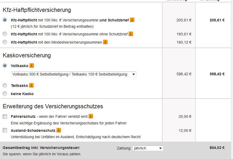 ... Jens das gleiche zahle ich bei der Kravag auch ! mit 49 € teurem Schutzbrief.