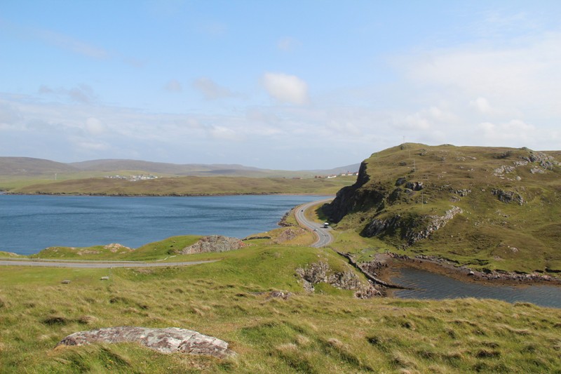 - ...oder mal einen Stein vom Atlanik in die Nordsee werfenam Mavis Grind auf den Shetlandinseln.