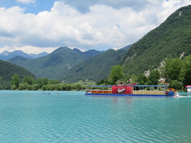 Entschuldigung, aber wer sich schon die Mühe macht von Gorica aus entlang der "untern" Soca zu fahren, die hier viele Male gestaut und dann wieder leer ist, sollte auch den oberen Teil der Soca, der völlig naturbelassen ist, von Tolmin bis zur Quelle ansehen. Auf der linken Fluss-Seite hätte es eine kleine, fast unbefahrene Strasse, die in Tolmin bei 46.1829/13.7217 beginnt und durch die kleinen Dörfer Volarje und Kamno und Ladra zur "Napoleon-Brücke" in Kobarid führt. Bei Kamno und Volarje hätte es ebenfalls Brücken, die aber für WoMo's "etwas" schmal sind