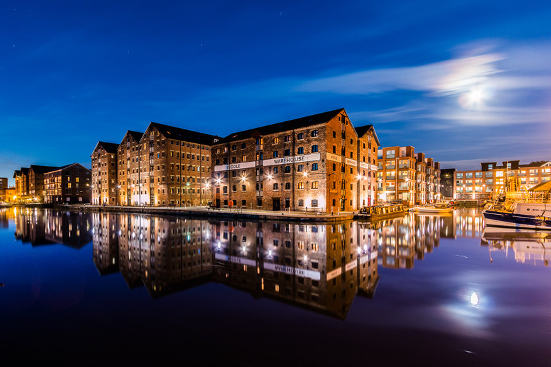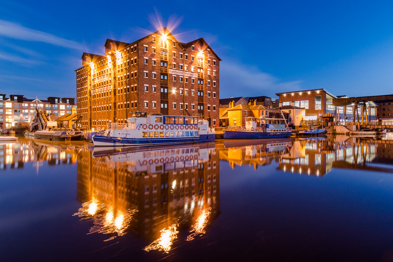 Gloucester liegt nicht weit von der Grenze zu Wales am River Severn. Genauer dort, wo sich der Severn zum Bristol Channel verbreitert. Besucher kommen hauptsächlich wegen der gotischen Kathedrale und den historischen Docks. Von letzteren möchte ich Euch hier zwei Aufnahmen zur blauen Stunde zeigen (sofern ich das mit dem Upload hinbekomme).
