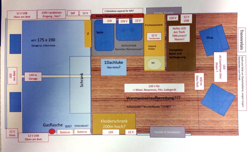 Strom habe ich eine 140WP Solaranlage mit 2x110AH Batterien geplant. Die Elektroinstallation werde ich von einer örtlichen Firma machen lassen ( wenn der Preis stimmt).Auf den Kostenvoranschlag warte ich noch. Hatte aber schon ein sehr nettes Gespräch mit dem Werkstattmeister. Er empfahl mir einen Elektroblock von CBE, entweder den PC100 oder den PC 220, hat jemand damit Erfahrungen gesammelt?