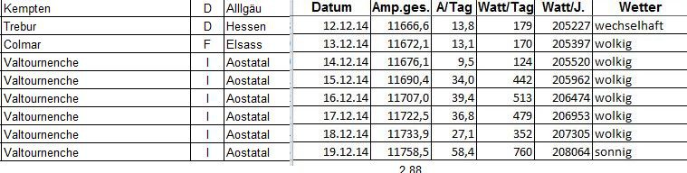 Habe es auch so verstanden und betreffend der Bezeichnungen ein Auge zugedrückt - bin aber auch von Haus aus kein ... :wink: ![]() :lol: :mrgreen: :lol: :augenauf: :bia: :daumen2: Heute waren es 76,0 Ah/d in Champoluc, volle Sonne von 11.30 bis 15.30 Uhr. :D |