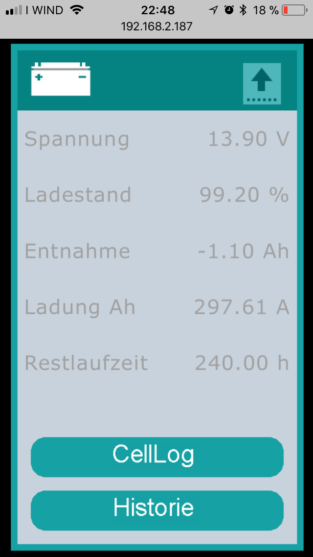 Hast Du zwischenzeitlich die Integration des Victron BMV realisiert?Ich habe gerade erst einen Victron BMV 702 verbaut, und könnte mir vorstellen, dass es ein guter Anfang wäre, genau diese Daten auszuwerten und später per Handy-App abrufbar zu machen.