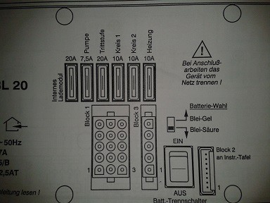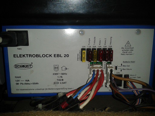 Zipfel is it !!! RK Ich weiß es! 13,8 Volt als Dauerladung und es gast dabei nichts. Dafür gibt es Netzteile mit fester Spannung und hoher Strombelastbarkeit (15-20 A). Habe einen Chausson. Da muss bei Landstrom zusätzlich der Hauptschalter am Meldetableau (Aufbau) eingeschaltet sein, damit die Fahrzeugbatterie mitgeladen wird. Ist aber bei anderen Womos anders. Voerdi Hallo, bei unserem RMB muss das Ladegerät manuell zugeschaltet werden. Wann, das zeigt die Anzeige in der "Elektrozentrale" oder der vielbeschworene Voltmeter. 12,36 Volt bedeutet ungefähr 25% Entladung 12,10 Volt " " 50 % " (Bei Blei/Säure) Batterien sind wie Kinder. Da muss ( sollte...) man immer ein Auge drauf haben. Wer das ignoriert, was ja auch legitim ist, bei dem/der ist es wie mit Zahnschmerzen. Meistens zu den unpassendsten Zeiten ( z.B. Urlaub), auf jeden Fall ist Unbill programmiert und/ oder ein Urlaubstag am A..... Da hab ichs lieber wenn mir die Batterienthematik bekannt und unter Kontrolle ist. Verwundert bin ich schon oft gewesen dass das bei nicht wenigen so stiefmütterlich behandelt wird. Amüsiert bin ich schon oft gewesen wenn dann, bei Totalausfall o.ä, der grosse Aktionismus rund ums Womo unübersehbar wird. Vg Rainer "Das ist der Nachteil dieser Expertenforen. Giovanni. TI Statt KAPUZE." Das ist weder ein "Expertenforum" und diese Nachteile hat man in jedem Forum. Man kann es so sagen: Jeder WoMo-Hersteller macht es anders, bei meinem werden zuerst die Aufbaubatt. geladen und wenn die voll sind, geht das Ladegerät in die Erhaltungsladung über und davon bekommt die Motorbatterie 1 A ab, und in aller Regel genügt das auf Dauer. Das radio und alle andere Technik bekommen eh den Saft aus den Aufbaubatterien. Gutes Nächtle! Für das Radio in meinem Knaus ist ein Schalter zuständig: Stellung I Betrieb über die Autobatterie Stellung II Betrieb über die Aufbaubatterie Stellung 0 Außer Betrieb. Das zum Thema Radio. aus NI Beim Radio wäre ich mir nicht so sicher, das gehört normalerweise zur Basis-Fahrzeug Verkabelung und nicht zum Aufbau. Wenn man nicht selbst was ändert, hängt das Radio mit DauerPlus (Klemme 30) an der Starterbatterie (zum Erhalt des Senderspeichers) und über Klemme 15 (Zündung) als Plus nach dem Einschalten. Viele bauen es aber um (z.B. mit einem Schalter), damit man über die Bordbatterie bei "Zündung aus" Radio hören kann. Hallo, ich nochmal! :) Habe vor 2 Tagen das Womo an Landstrom angeschlossen, um die Batterien zu laden. Seit gestern läuft auch die Heizung. Hintergrund ist, daß ich heute Besuch bekomme und den beiden das Womo zum Übernachten kuschelig warm machen wollte. Jetzt ist es allerdings so, daß am Panel die 230V-Leuchte nicht leuchtet. Auf den 230V-Dosen ist aber Strom :-o Die Batterieanzeigen im Panel gingen kontinuierlich zurück auf schon unter 12V. Der Schalter am EBL ist an. Ich hab jetzt als Notlösung erstmal den Motor 15min. laufen lassen(sprang grade noch so an), jetzt stehen beide Batt.-Anzeigen wieder auf ca. 12,5V Was kann der Fehler sein? Sicherung? Wieso wird nicht geladen, obwohl die 230V doch wohl im Womo ankommen(Steckdosen)? Hy Thomas, der Netzstecker steckt fest im EBL? Ist dort Spannung drauf? Ansonsten wird's wohl hoffentlich nur die interne Sicherung sein. Hi, Danke für die schnelle Antwort! Der Netzstecker scheint fest. Ob da Spannung drauf ist? Weiss nicht. Muss mir demnächst mal so'n Prüfgerät besorgen. Interne Sicherung? Ist das die hier -> im Schema links(internes Lademodul)? Darf ich die einfach mal so ziehen, ohne vorher den Netzstecker rauszutun? Sorry, bin was Elektrik angeht totaler Laie :eek:P.S. Was käme für nen Anfänger wie mich für ein Prüfgerät in Frage, mit dem ich grundlegende Sachen checken kann, ohne daß mich das Gerät total überfordert? Hy Thomas, es gibt noch eine interne Sicherung im EBL (für die 230 V Seite). Am besten, Du holst Dir ein einfaches Multimeter, wie es bei CONRAD & Co. für grade mal ~10 Eur angeboten wird. Das reicht für "unsere" Zwecke vollkommen aus. Hallo, damit es nicht zu unübersichtlich wird, mach ich einen neuen Faden auf. Im ursprünglichen Thread -> --> Link hatte ich ja schon von meinen Problemen berichtet. Also, das Schaudt-EBL lädt bei angeschlossenem Landstrom die Batterien nicht, aber 230V sind auf den Steckdosen. Ich hab jetzt die Batterien mit externem Ladegerät nachgeladen. Ich hoffe, das war o.k. so.