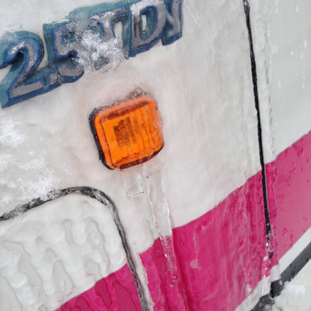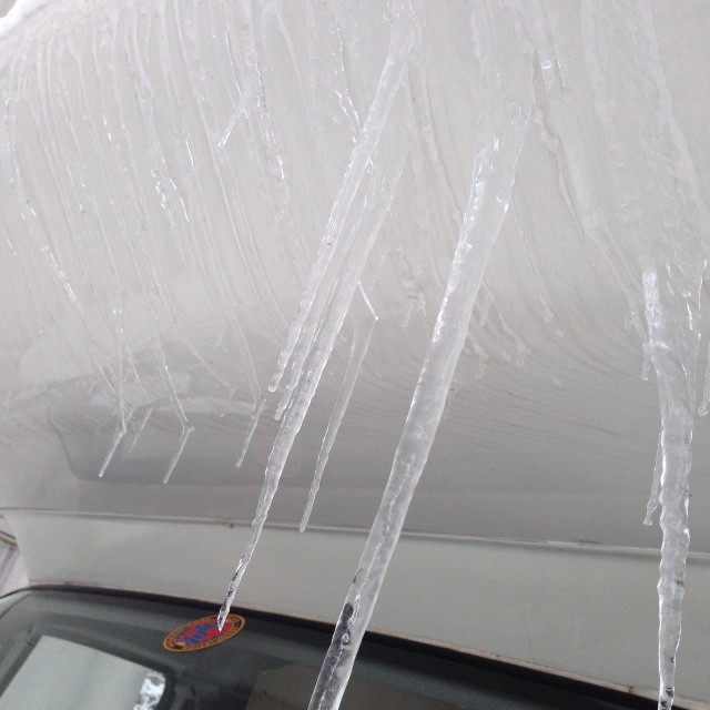 Ganz schön Unverantwortlich wenn man so mit Eisblöcken auf dem Dach rumfährt.