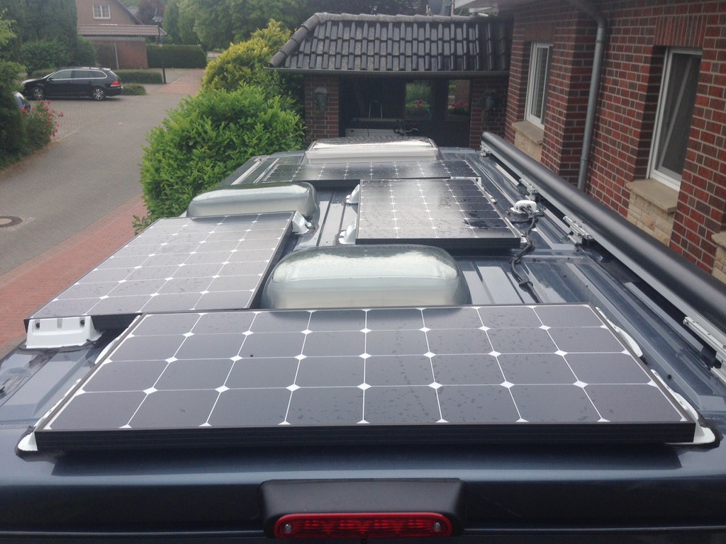 Würde ich nur nehmen, wenn es kürzer als einen Meter ist; ansonsten doch eher 4mm². Woher ich das mit 2,5 Quadratmillimetern genau hatte weiß ich nicht mehr, aber es war aus einer Jetzt mach ich es selbst- Anleitung von hier oder einem Nachbarforum. Die Meinungen scheinen da unterschiedlich zu sein. Es ist jetzt geklebt, also laß ich das so. Die Kabellänge zum Regler sind etwa drei Meter, zur Batterie nochmal einer. Wird schon schiefgehen. Meine Anlage ist inzwischen auch drauf. Ich habe mich für ein flexibles Hochleistungsmodul mit 140wp und den victron75/15 mppt Solaregler unter dem Fahrersitz entschieden. Dazwischen 6mm2 Kabel. Absolut klasse die Leistung. Jetzt, Anfang März kommen 27,7Volt vom Dach zum Regler :) Auch unter den Fahrersitz habe ich einen Standby-Charger mit Ausschalter gesetzt, damit sich die Starterbatterie nur dann lädt, wenn ich es will. Ein kleines Voltmeter mit Taster habe ich noch ins Technikpanel gebaut, damit ich mich immer wieder am Sonnenstrom erquicken kann. :idea: Gekostet hat das Ganze mit allen Kleinteilen Kabel und Kleber 470€. Dachdurchführung für 13€ war umsonst gekauft. Sie passte nicht so gut wie eine Baumarkt Verteilerdose und liegt jetzt wohl für die nächsten 20 Jahre in der Werkstatt, wenn sie von euch keiner brauchen kann und gerade in der Nähe von Heilbronn ist... Hallo Jürgen Wir beabsichtigen auch ein oder zwei Flex-Mudule zu montieren. Haben auch diese Sicken. Könntest du vielleicht ein Foto von deinem Dach machen wie du das jetzt gelöst hast? Danke im Voraus Wolfgang Hallo Wolfgang, tut mit leid, dass ich jetzt erst antworte. Habe deine Nachricht eben erst gelesen. Habe schon eine Weile nicht mehr in den Thread geschaut. Am Wochenende komme ich vielleicht dazu, ein paar Bilder zu machen. Hoffentlich noch nicht zu spät? Hallo Mittlerweile habe ich schon Solar auf dem Dach. Kannst trotzdem mal ein Bild rein stellen wie es bei dir aussieht. Wolfgang Hallo ich habe das so gelöst: Malibu 600 DB ![]() 4 X 85 WP Maße 669x35x795mm und Solar Regler Victron Energy M P P T 100/30 30A LG Bernd Danke Bernd für die Fotos! :) Du hast ja Dein Dach maximal ausgenutzt! Jetzt kannst Du ja bald noch Strom in's Netz einspeisen! :lach: Hallo Thomas